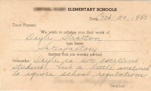 At least my first grade teacher recognized my leanings toward creativity. But she is also the one who told my mother she should not have taught me my letters, because they no longer used that method to teach reading. My ploy was to ignore what the teacher was doing and just read ahead on my own, and do arithmetic the way my dad taught me. Hence the "stubbornness", which has stood me in good stead all my life.